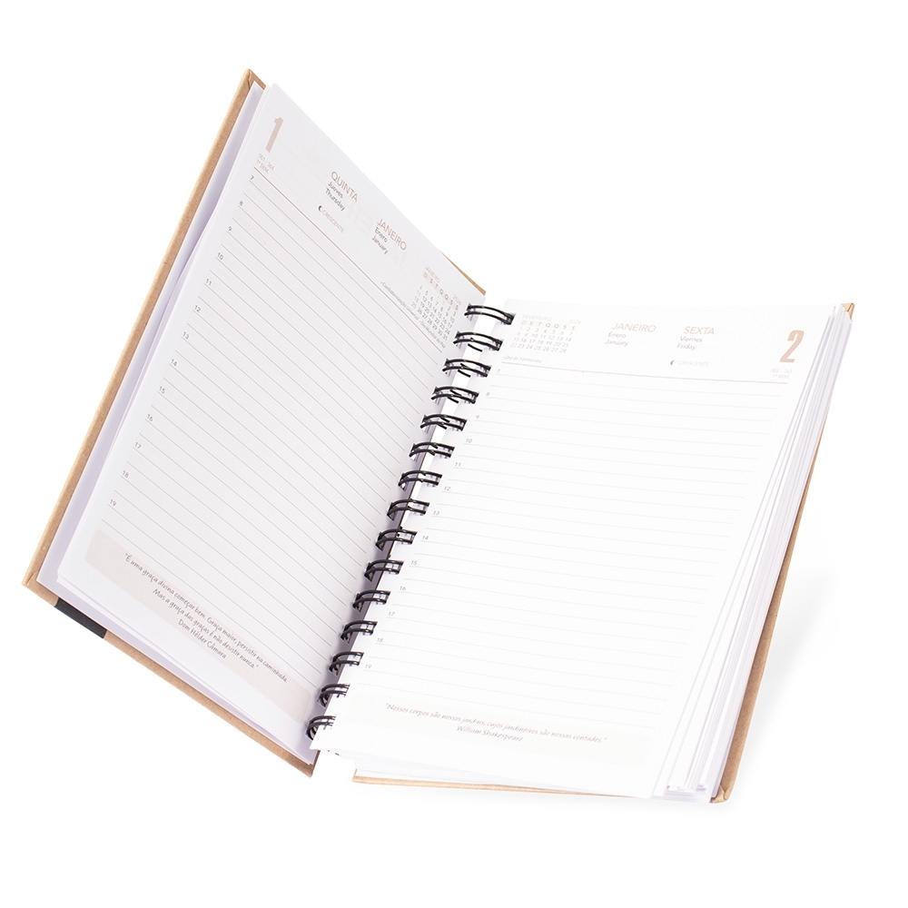 Descrição do produtoAgenda diária 2026 com capa dura em kraft e encadernação em Wire-O. Contém páginas dedicadas a dados pessoais, calendários de 2025 a 2027, orçamento pessoal, planejamento mensal, espaço para anotações diárias, lista de contatos e mapas. - Tamanho : Altura : 20,7 cm Largura : 15,5 cm Espessura : 2,6 cm