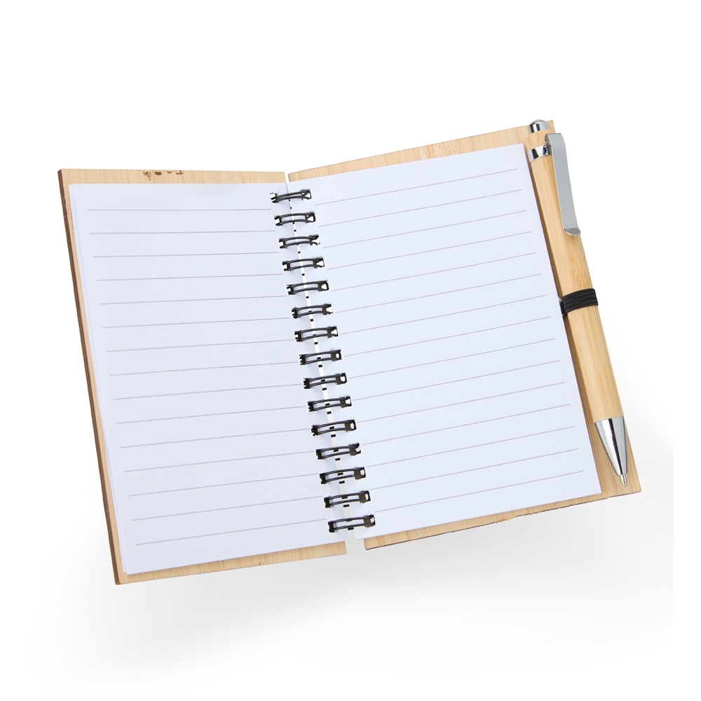 Descrição do produtoCaderno ecológica com caneta. Capa de bambu. Possui aproximadamente 50 folhas brancas pautadas. Acompanha uma caneta de bambu com detalhes em metal. - Tamanho : Altura : 14 cm Largura : 10,6 cm Espessura : 1,5 cm